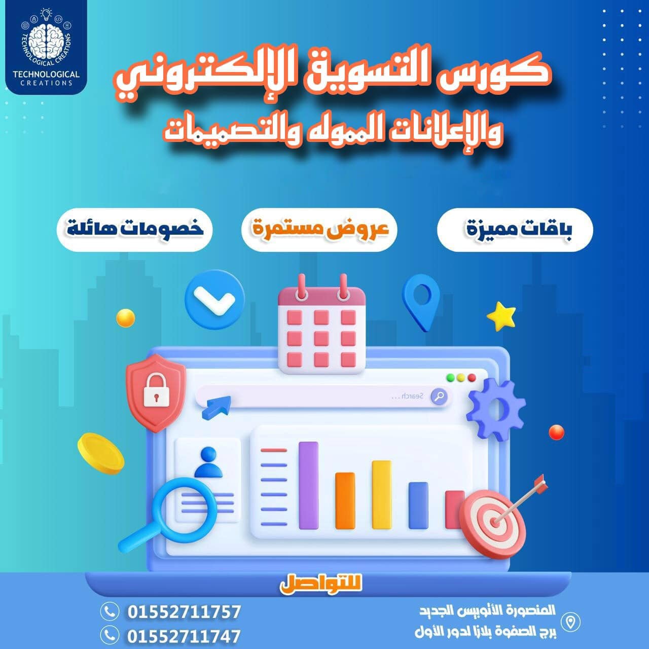 Technoligical Creations introduces an e-marketing course with a focus on AI involves understanding both digital marketing fundamentals and how AI can enhance marketing strategies.